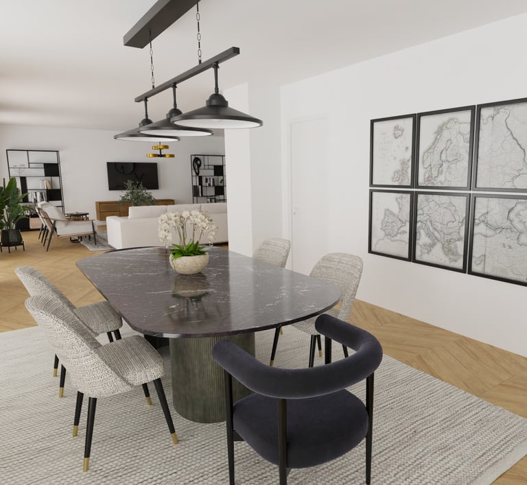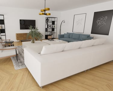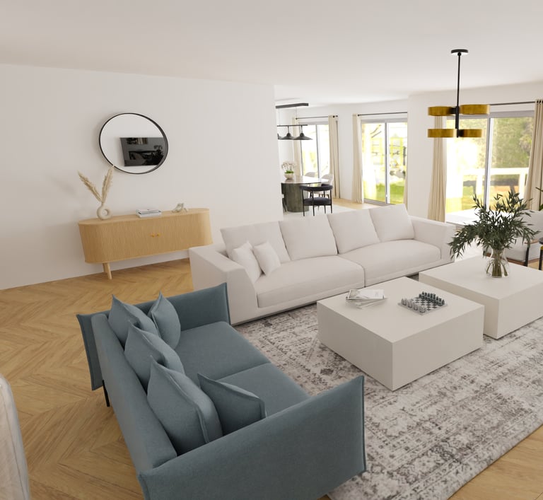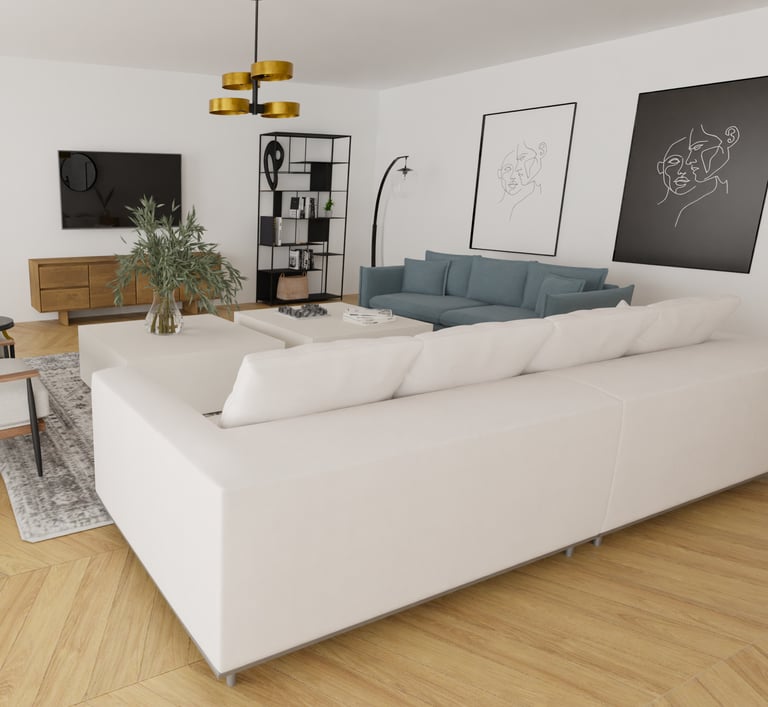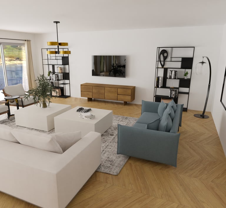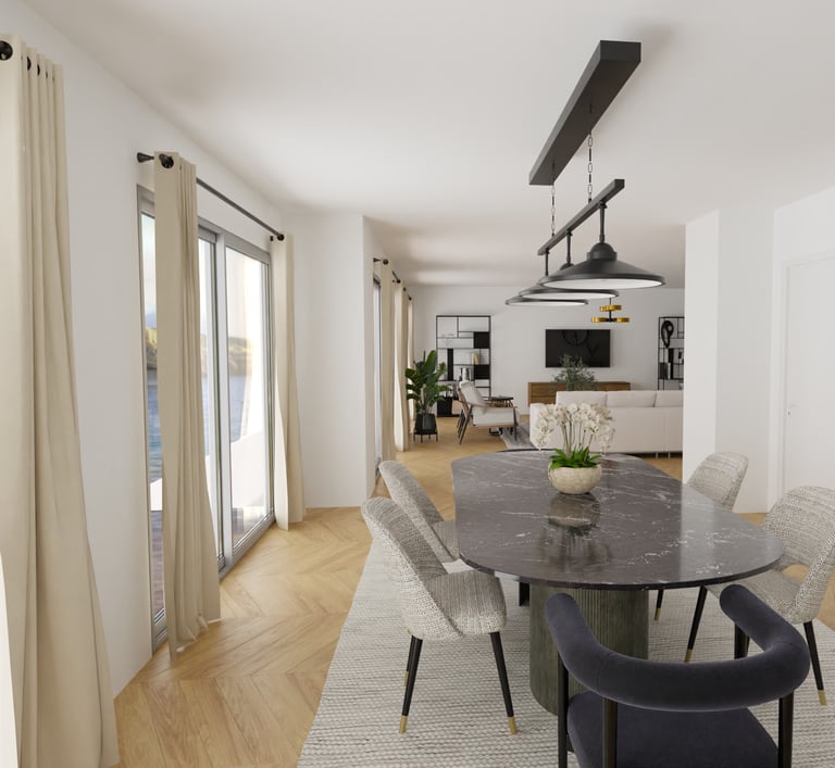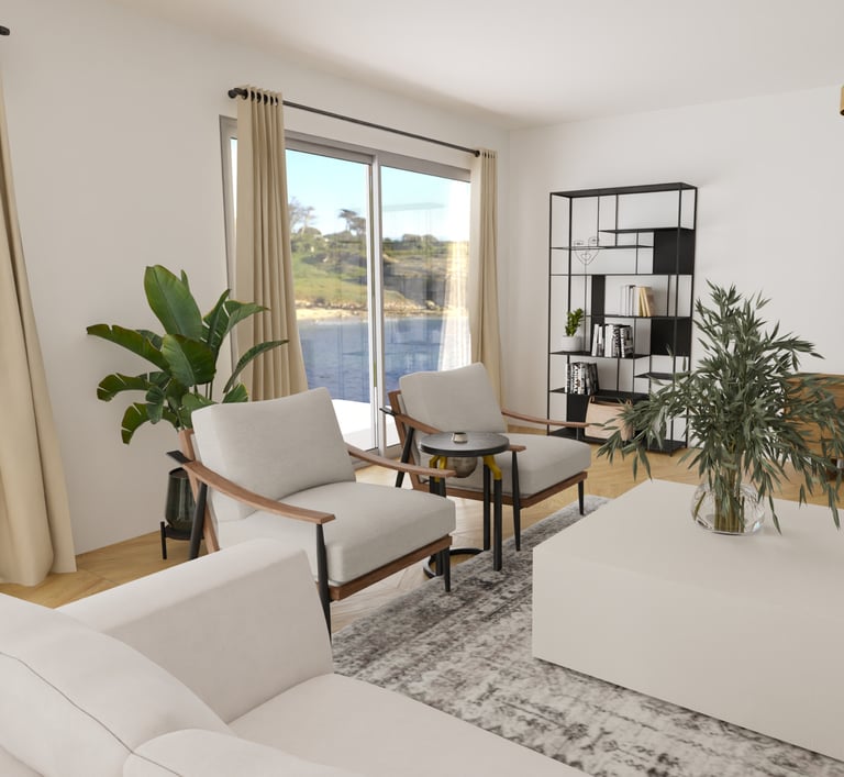Afin d'aider à la vente de cet appartement sur Cannes, une agence immobilière nous a contacté afin de créer des visuels pour transformer cet espace vide et aider les potentiels acheteurs à se projeter.