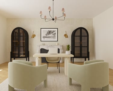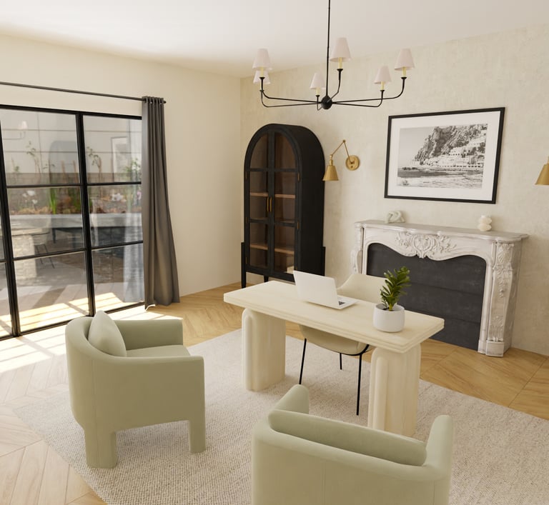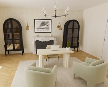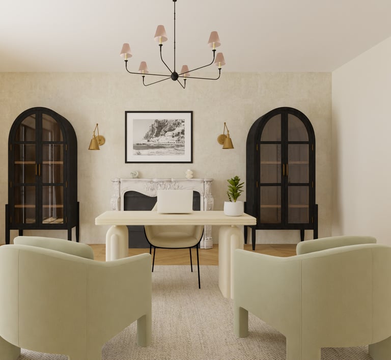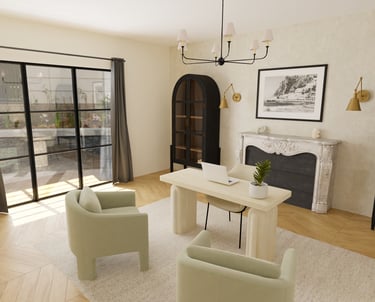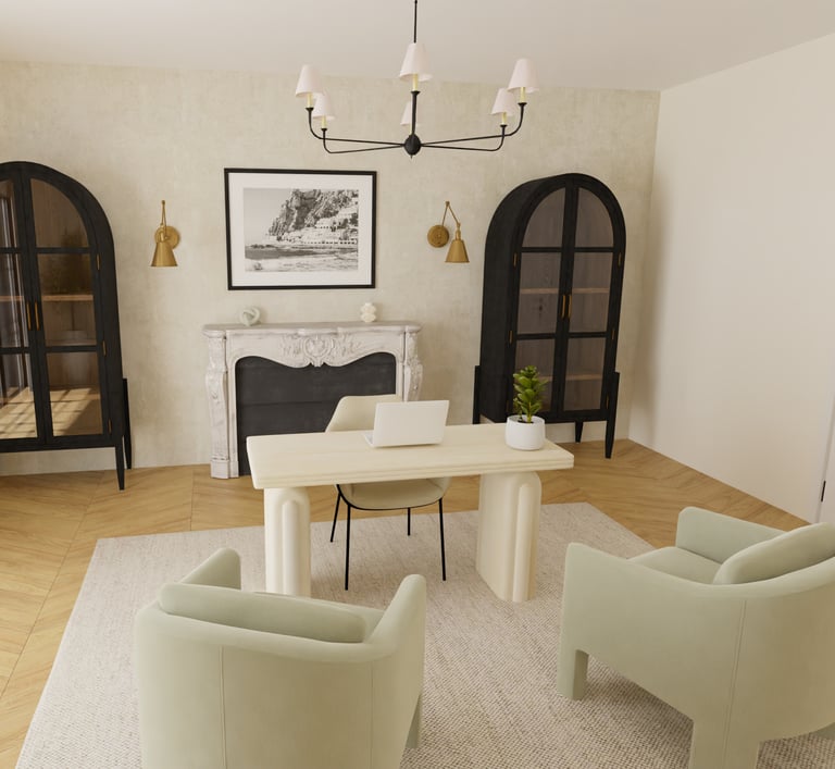 L'objectif était de créer un bureau élégant et fonctionnel, en respectant le caractère classique du lieu tout en y apportant une touche contemporaine.